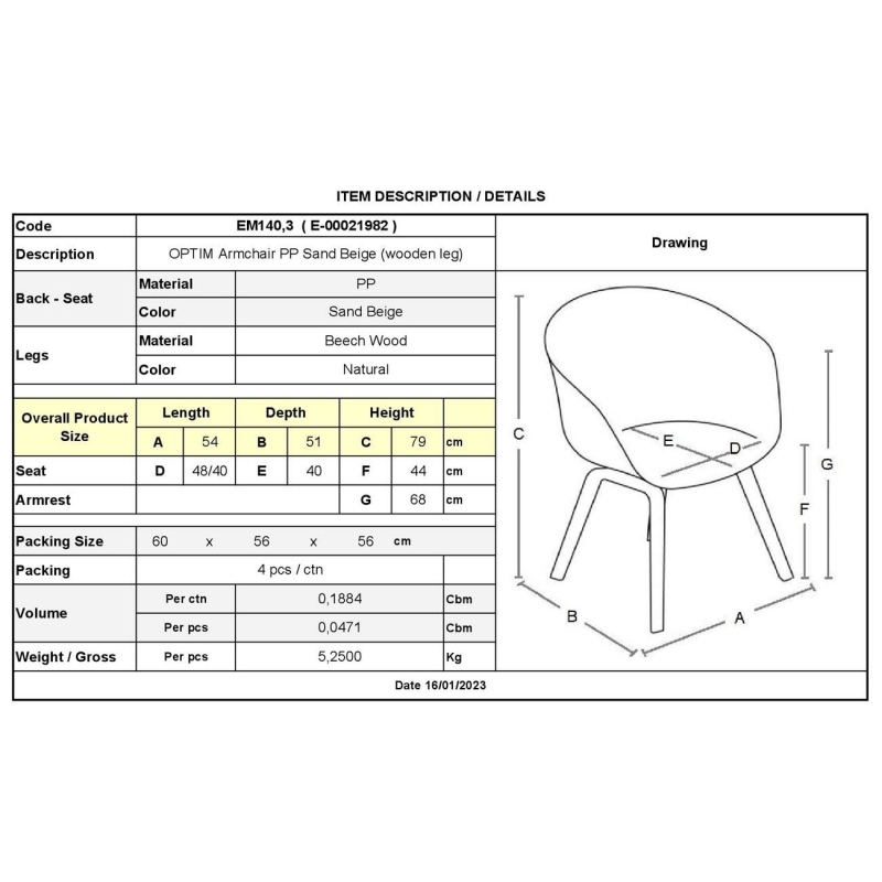 ΕΜ140,3 OPTIM Πολυθρόνα PP Sand Beige (Ξύλινο πόδι)
