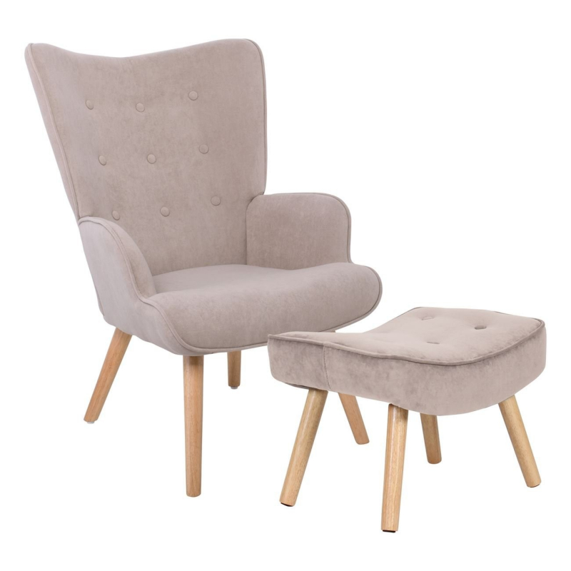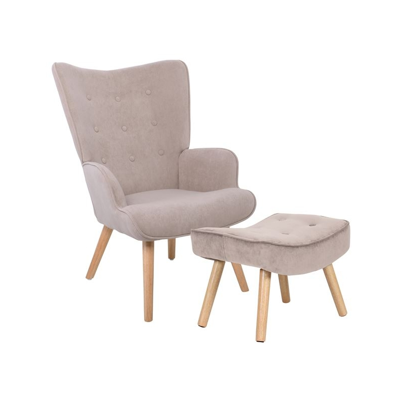 ALMA Πολυθρόνα - Μπερζέρα με Σκαμπό - Υποπόδιο Φυσικό Ύφασμα Velure Ανοιχτό Καφέ,K/D 69x76x97cm / 52x38x35cm