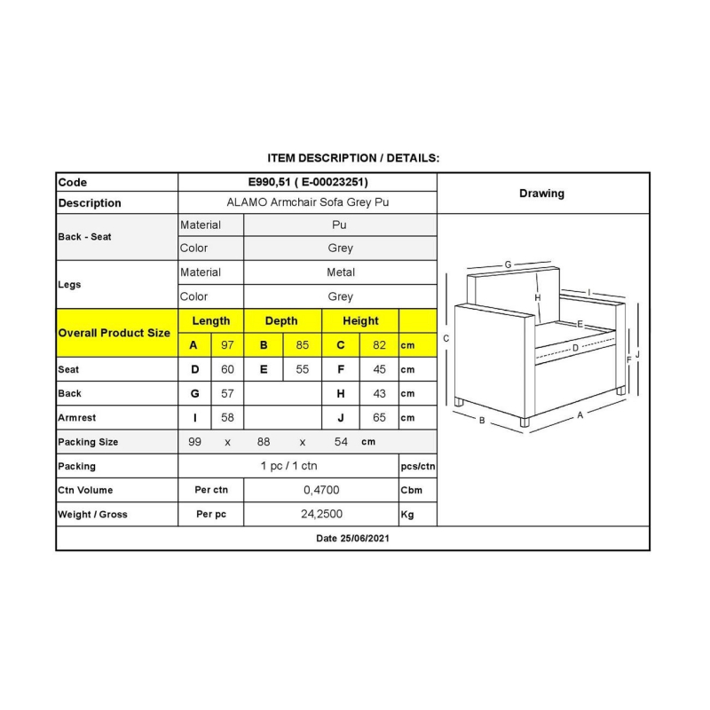 Ε990,51 ALAMO Πολυθρόνα Pu Γκρι
