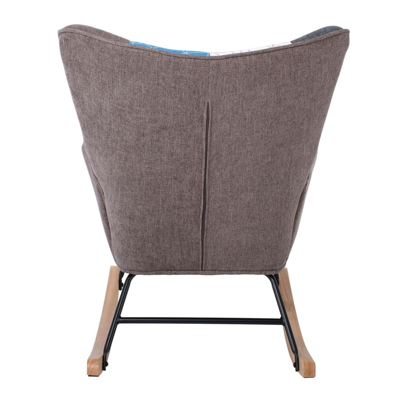 ALMA Rocking Πολυθρόνα Μπερζέρα Καθιστικού, Ύφασμα Patchwork, Βάση Μαύρο-Φυσικό 67x86x92cm