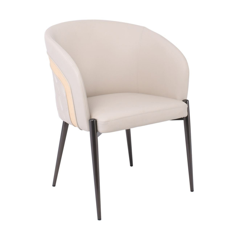 LENA Πολυθρόνα Μέταλλο Βαφή Μαύρο, Pu Μπεζ 60x60x80cm