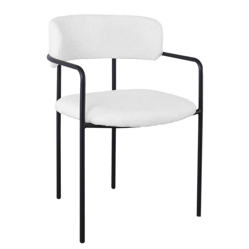 GILLAN Πολυθρόνα Μέταλλο Βαφή Μαύρο, Ύφασμα Teddy, Απόχρωση Άσπρο 54x54x81cm