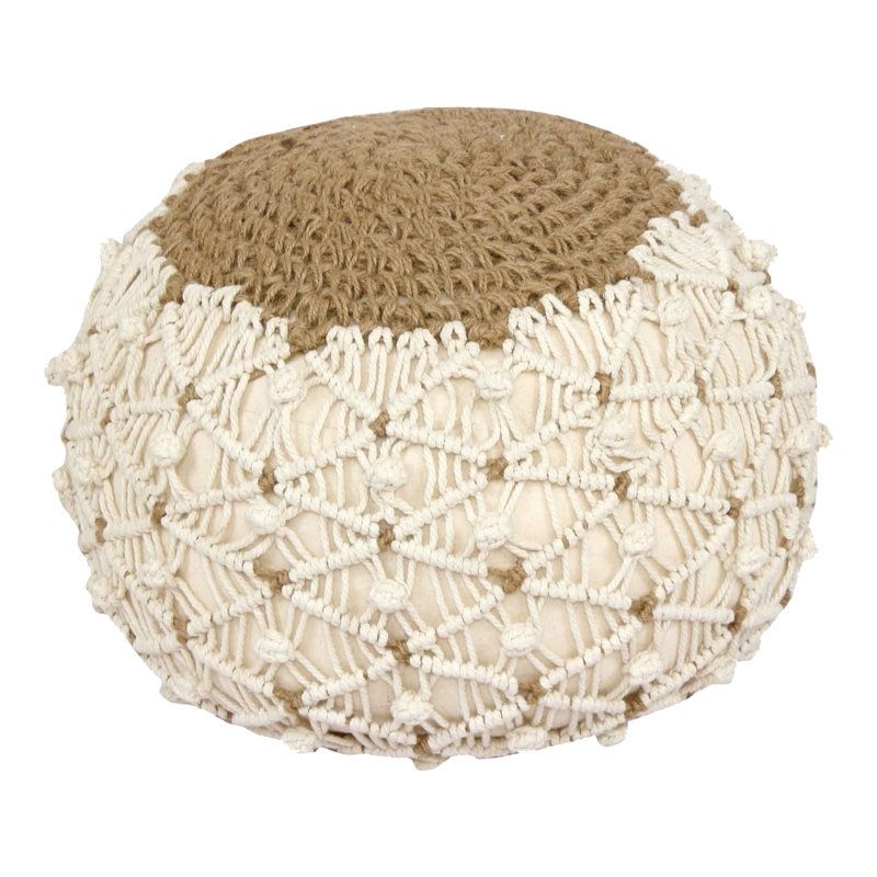 Σκαμπό-πουφ Boha Inart γιούτα σε κίτρινη και λευκή απόχρωση Φ40x30εκ