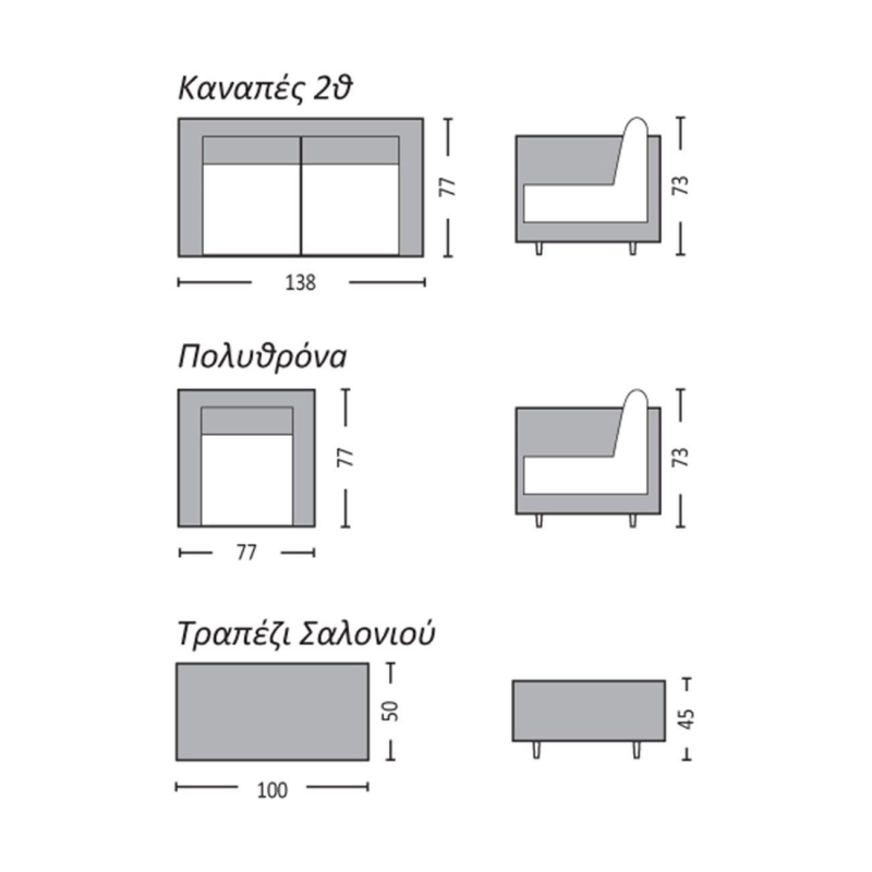 Βάθος Καθίσματος 50cm Μήκος 115cm