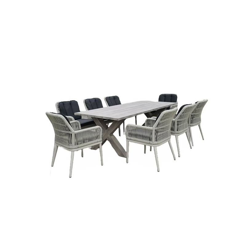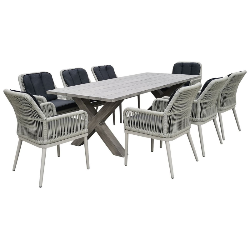 ALLEY Set Τραπεζαρία Κήπου ALU & Rope Grey-Μαξιλ.Ανθρακί: Τραπέζι 220x94 + 8 Πολυθρόνες Τραπ:220x94x72 Πολ:62x64x85cm