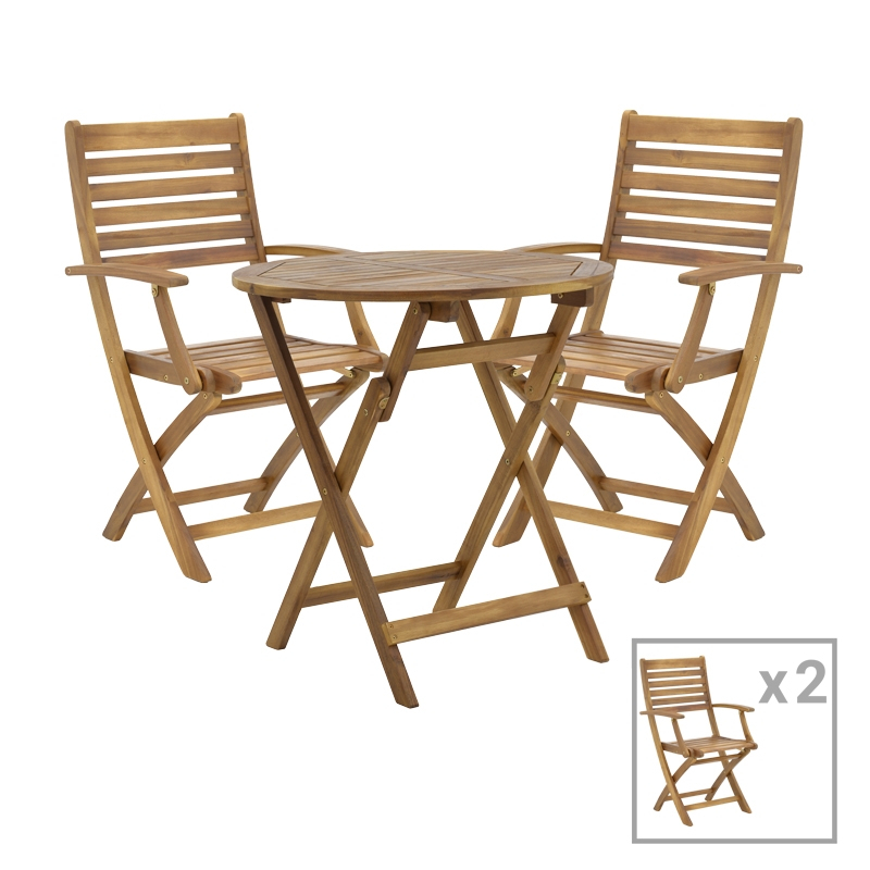 Τραπεζαρία Gorpo-Carpuva pakoworld σετ 3τεμ πτυσσόμενο φυσικό μασίφ ξύλο ακακίας Φ70x74εκ