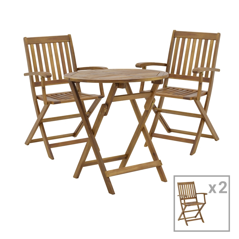 Τραπεζαρία Joter-Carpuva pakoworld σετ 3τεμ πτυσσόμενο φυσικό μασίφ ξύλο ακακίας Φ70x74εκ