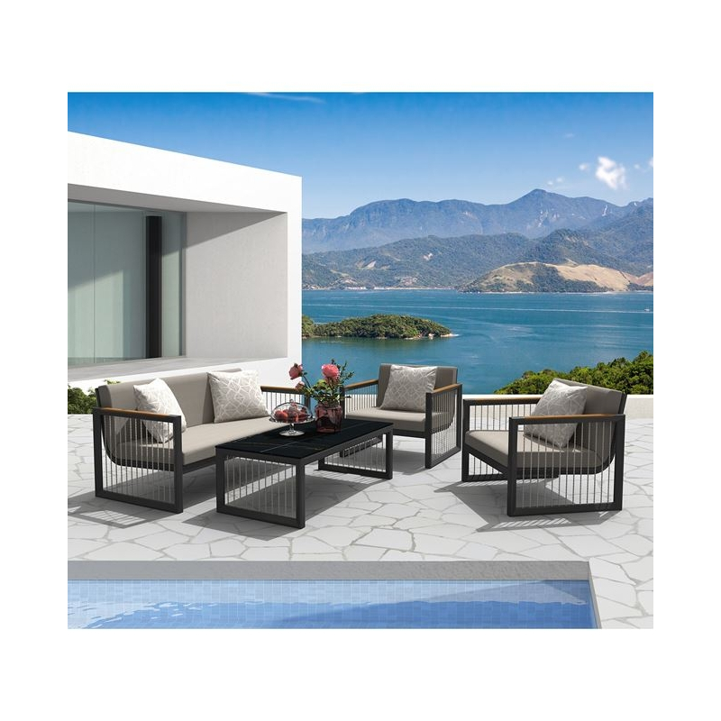 CORDOBA Set Καθιστικό ALU Ανθρακί: Καναπές+2 Πολυθρόνες+ Τραπεζάκι, Μαξιλάρια Μπεζ 147x78x70-80x78x70-120x60x40cm