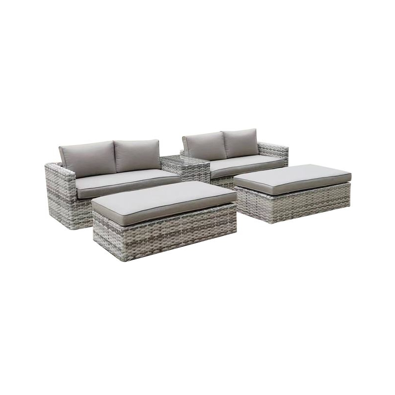 ASCOT Set Wicker Alu, Καναπές 4Θέσιος+2 σκαμπό+Τραπεζάκι, Wicker Grey White, Μαξιλ.Μπεζ Table:75x43x52cm Set 6 Seats