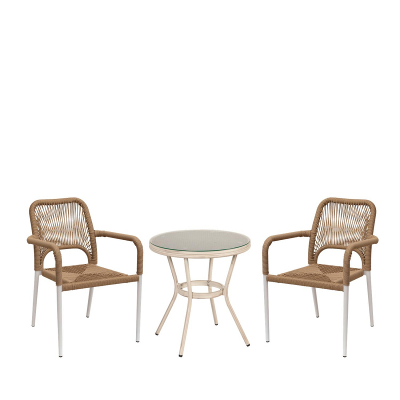 Σετ Τραπεζαρία Κήπου ArteLibre BURUNDI Λευκό Αλουμίνιο/Γυαλί Με 2 Πολυθρόνες 14990269