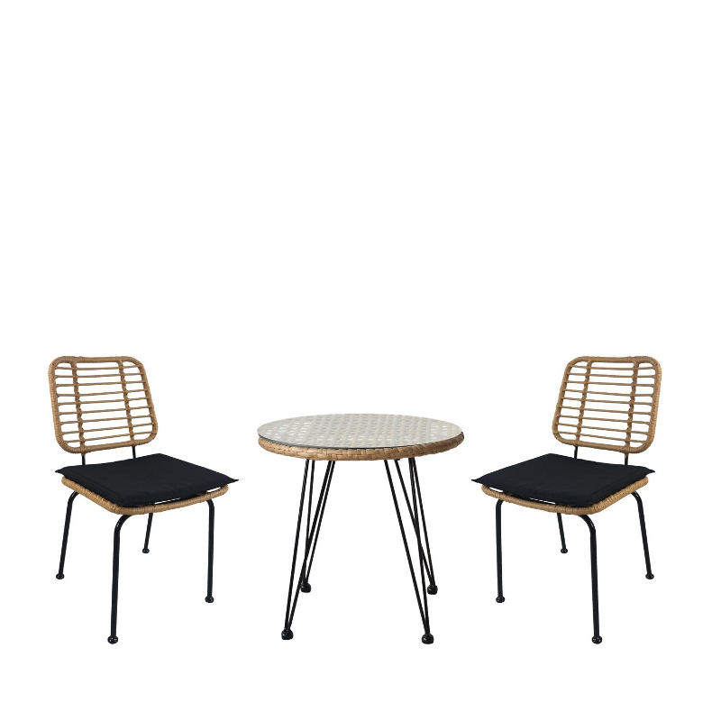 Σετ τραπεζαρία κήπου EUSEBIO φυσικό/μαύρο μέταλλο/rattan με 2 καρέκλες.