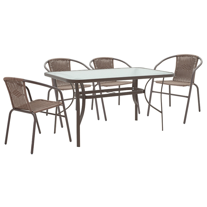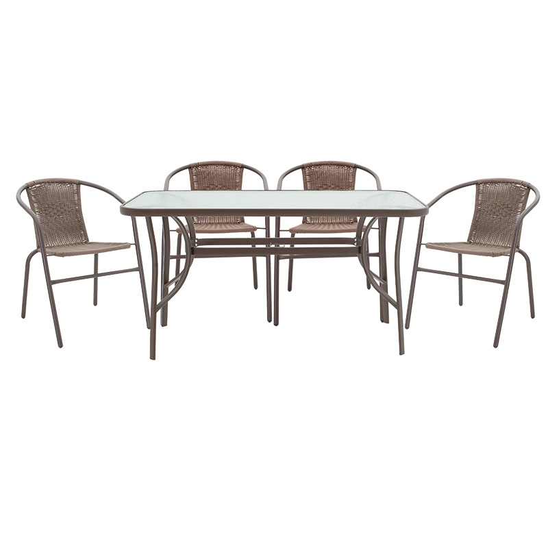 Τραπεζαρία Ensure-Obbi pakoworld σετ 5τεμ μέταλλο-γυαλί καφέ 140x80x70εκ