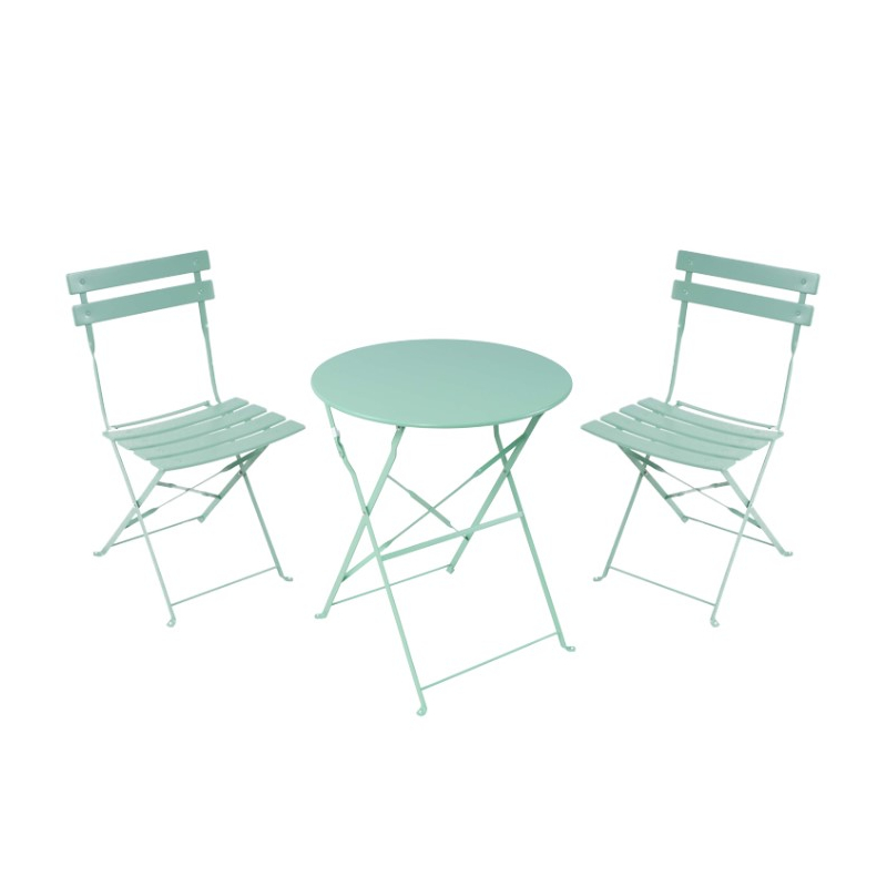 Τραπεζαρία Bistro pakoworld σετ 3τεμ μεταλλική αναδιπλούμενη σε μέντα απόχρωση Φ60x71εκ