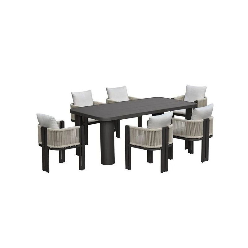 BOSTON Dining Set Τραπεζαρία Κήπου Βεράντας: Τραπέζι + 6 Πολυθρόνες Alu Ανθρακί - Μπεζ