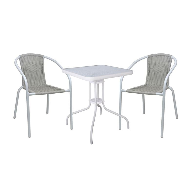 Ε240,13W BALENO-W Set (Τραπ.70x70cm+2 Πολ) Μεταλ.Άσπρο/Beige Wicker