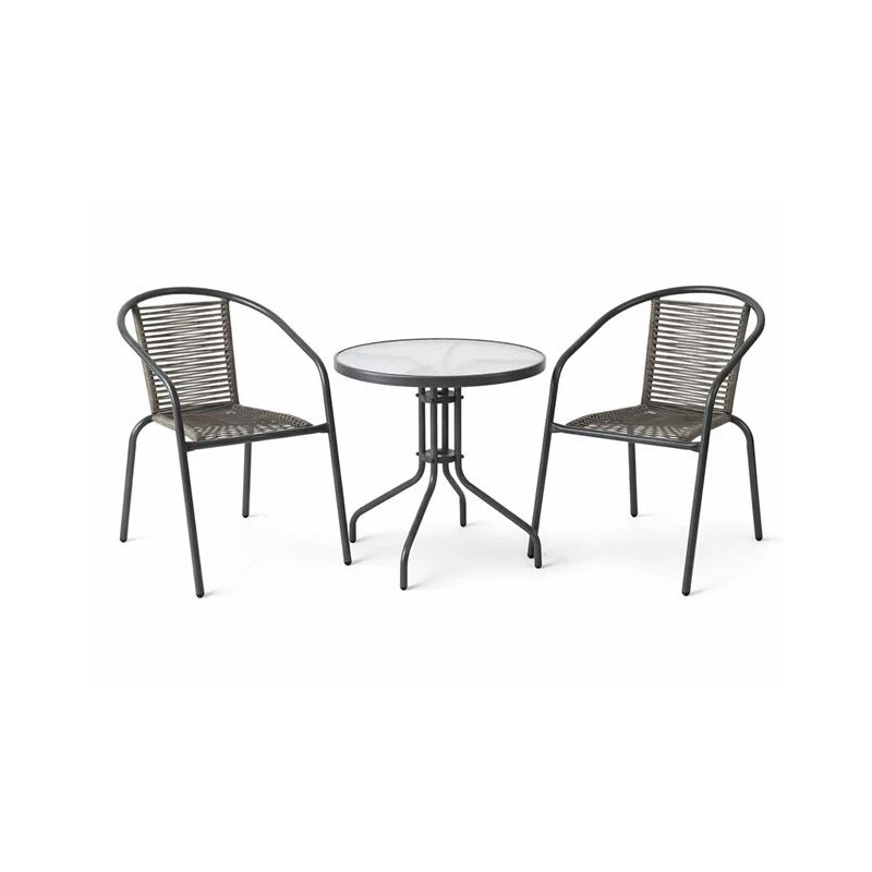 MIKA Set Κήπου - Βεράντας: Τραπέζι + 2 Πολυθρόνες Μέταλλο Βαφή Ανθρακί, PE Rattan Γκρι Table:Φ60x70 Chair:54x69x73cm
