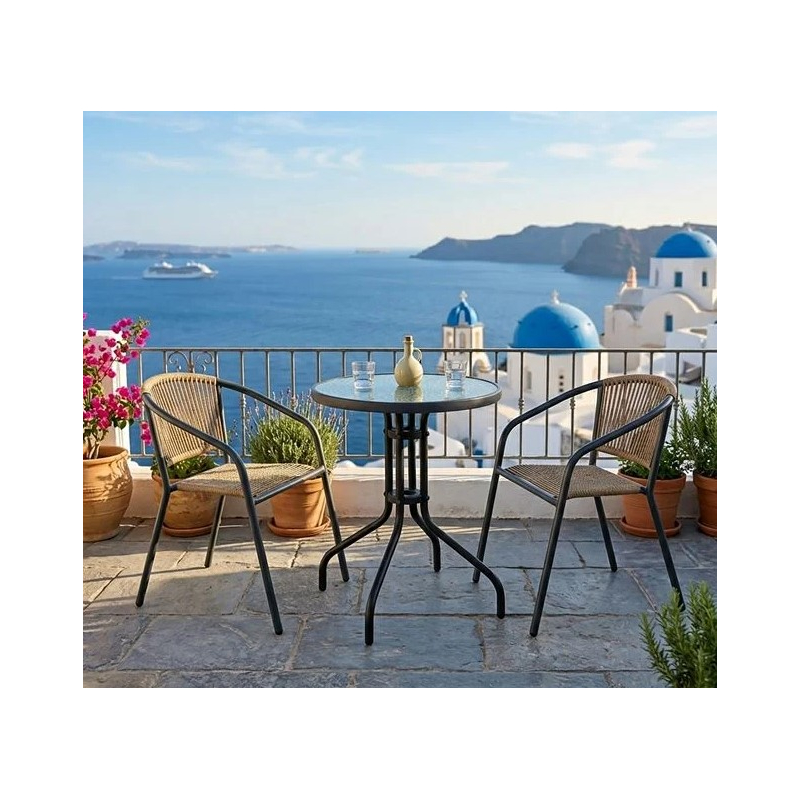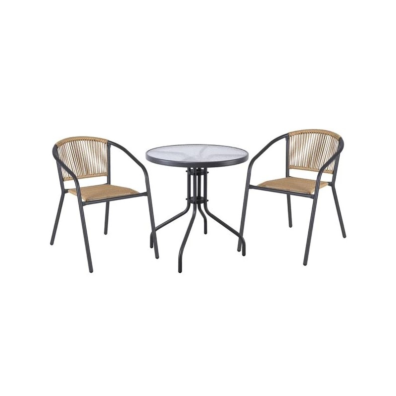 PATTY Set Κήπου - Βεράντας: Τραπέζι + 2 Πολυθρόνες Μέταλλο Βαφή Ανθρακί, PE Rattan Φυσικό Table:Φ60x70 Chair:54x69x73cm