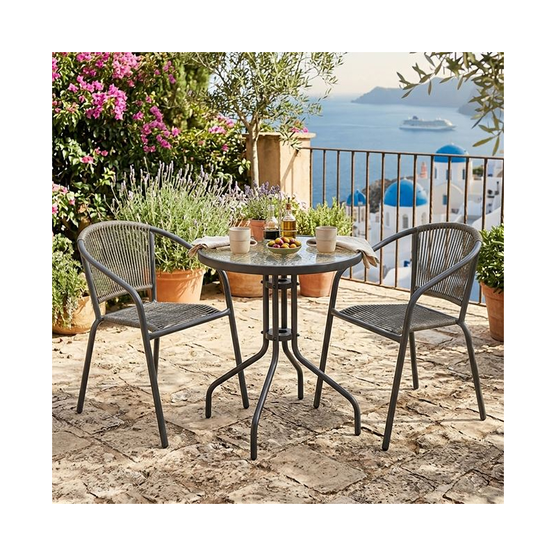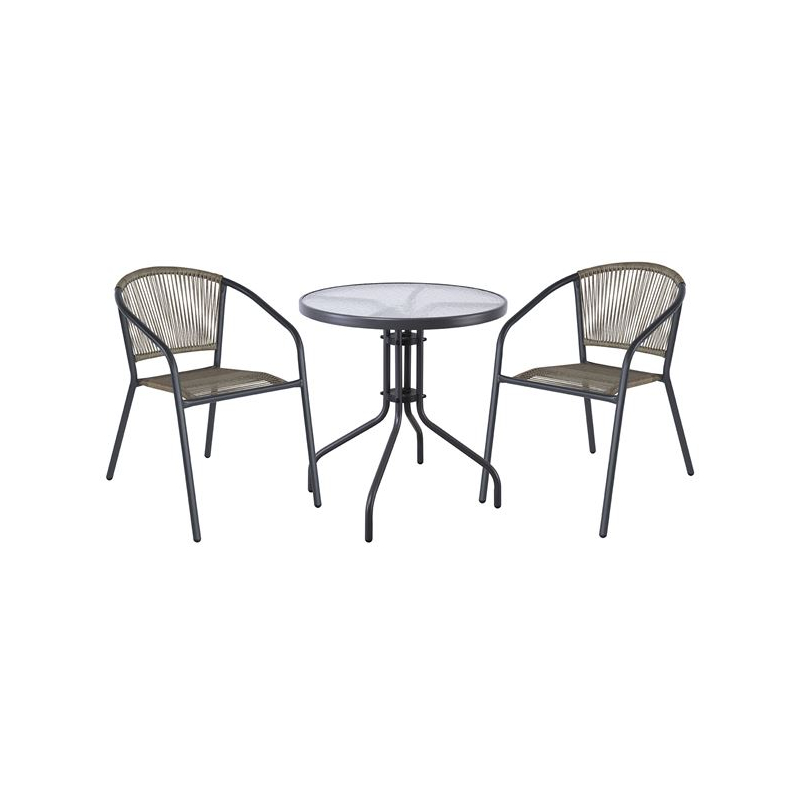 PATTY Set Κήπου - Βεράντας: Τραπέζι + 2 Πολυθρόνες Μέταλλο Βαφή Ανθρακί, PE Rattan Γκρι Table:Φ60x70 Chair:54x69x73cm