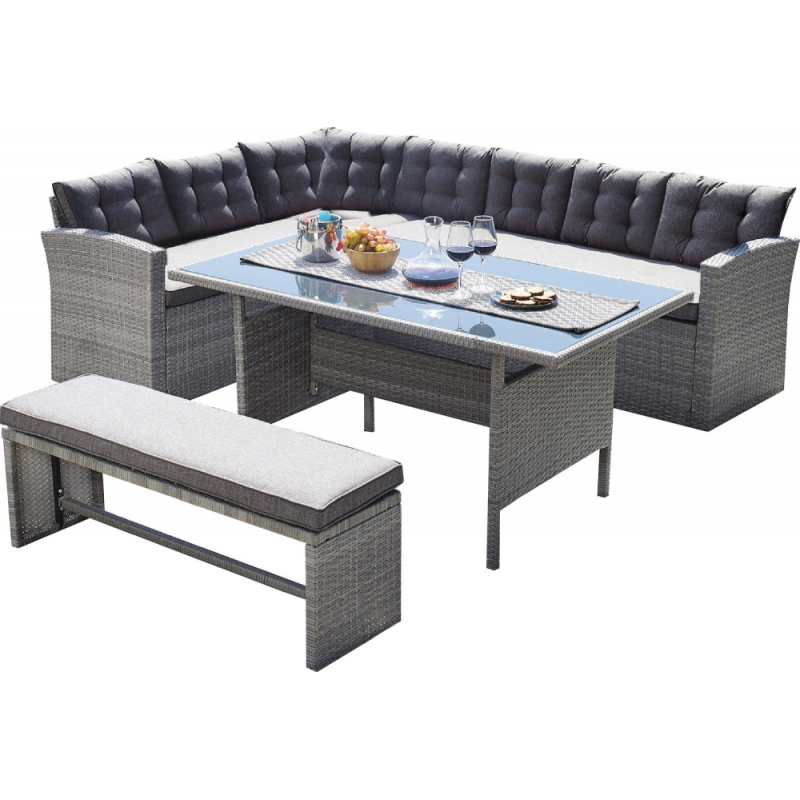 CENTER Set Σαλόνι Καθιστικό - Γωνιακή Τραπεζαρία Κήπου, Μέταλλο-Wicker Γκρι+ Μαξιλάρια Τραπέζι+Καναπές Γωνία+Πάγκος