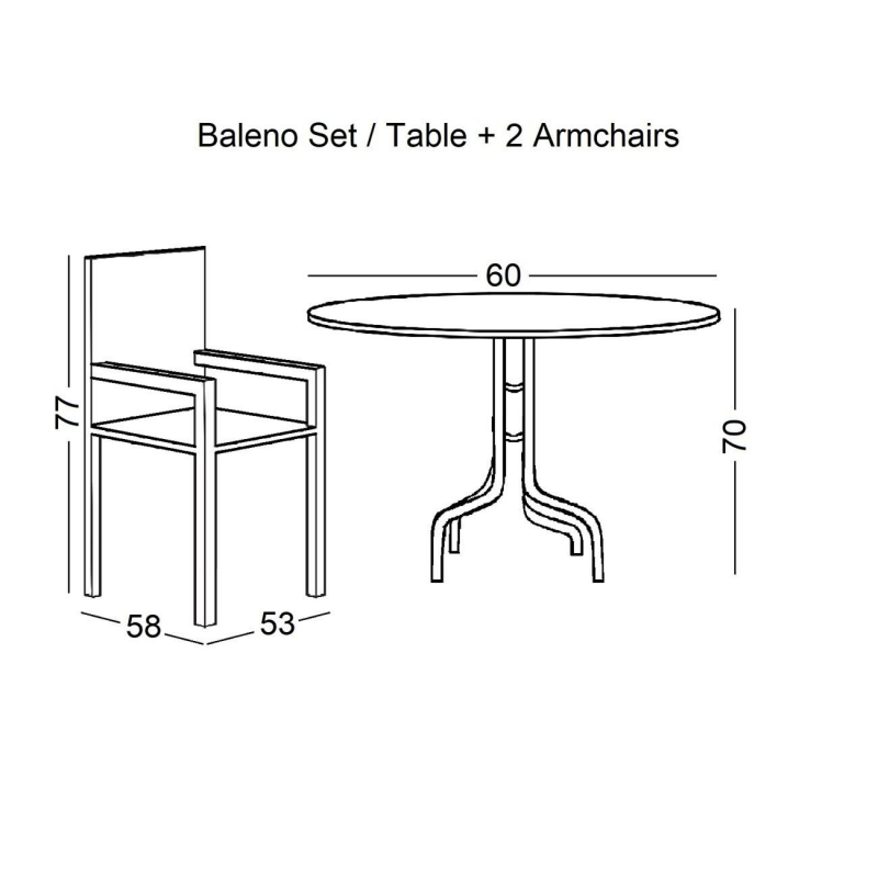 Ε240,8 BALENO Set (Τραπ.Φ60cm+2 Πολ) Μεταλ.Άσπρο/Beige Wicker