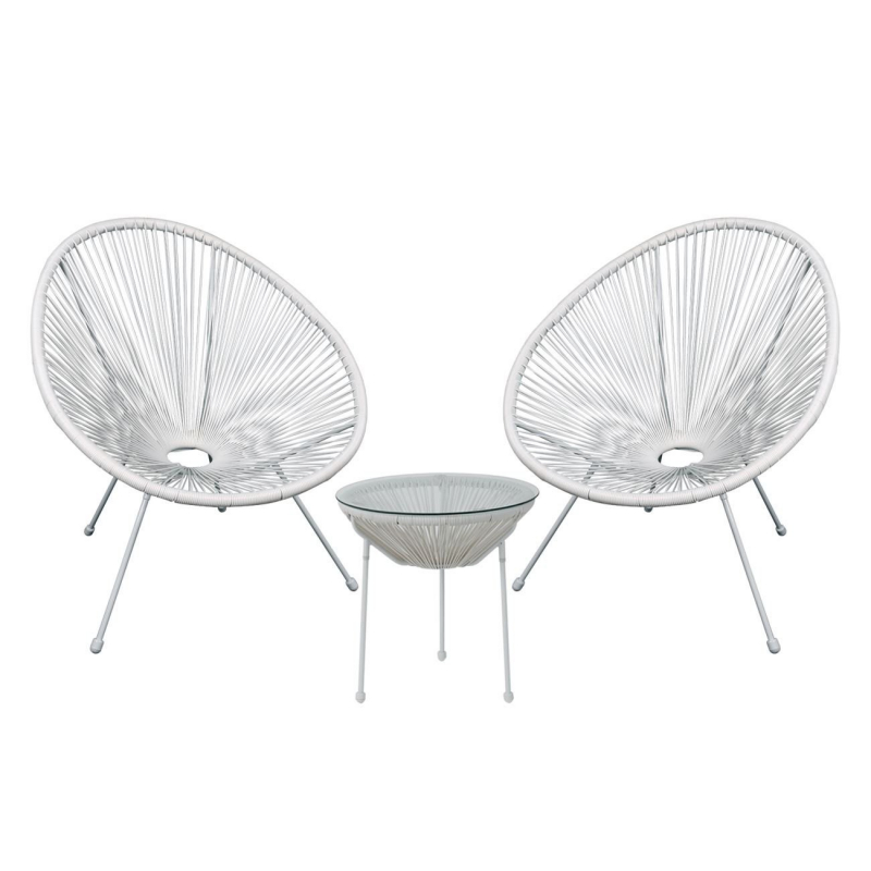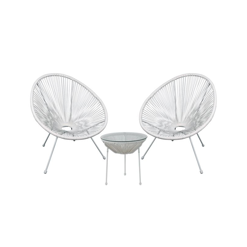 ACAPULCO Set Κήπου - Βεράντας: Τραπέζι + 2 Πολυθρόνες Μέταλλο Άσπρο/Rattan Άσπρο Τραπ:Φ50x50cm - Πολ:70x69x81cm