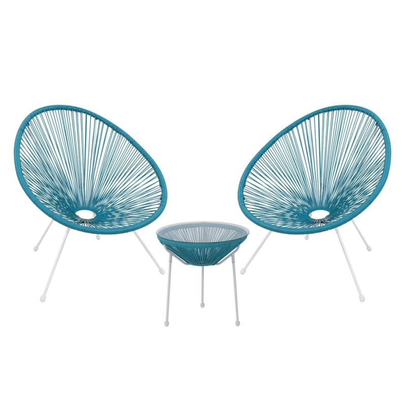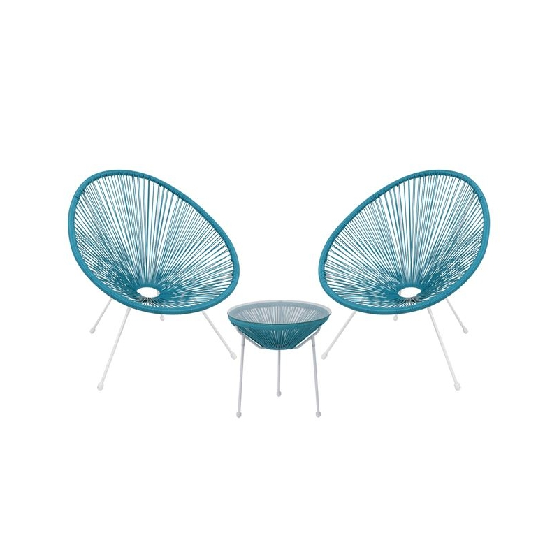 ACAPULCO Set Κήπου - Βεράντας: Τραπέζι + 2 Πολυθρόνες Μέταλλο Άσπρο / Rattan Μπλε Τραπ:Φ50x50cm - Πολ:70x69x81cm