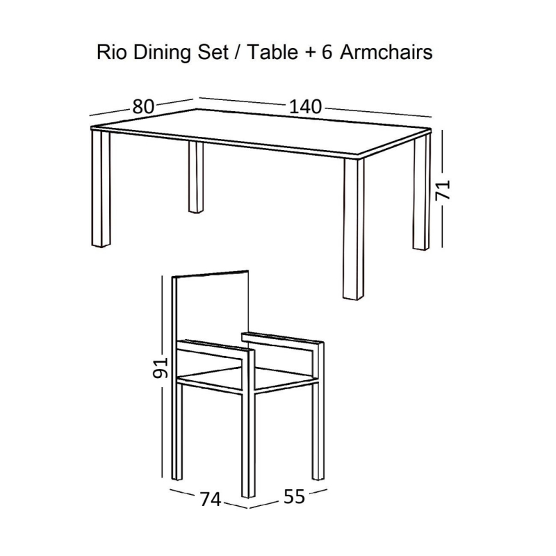 RIO Set Τραπεζαρία Μέταλλο Βαφή Ανθρακί, Textilene Γκρι: Τραπέζι + 6 Πολυθρόνες Table:140x80x71 Chair:55x74x91