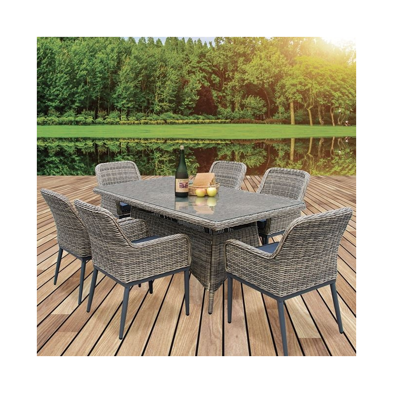 HAVANA Set Τραπεζαρία Κήπου ALU,Wicker Grey Brown-Ανθρακί: Τραπέζι 180x90 + 6 Πολυθρόνες