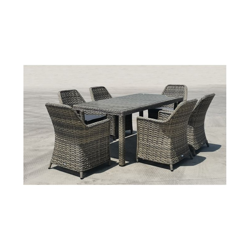 ESPERIA Set Τραπεζαρία Κήπου ALU,Wicker Grey Brown-Ανθρακί: Τραπέζι 180x90 + 6 Πολυθρόνες Τραπ:180x90x78 Πολ:64x68x90cm