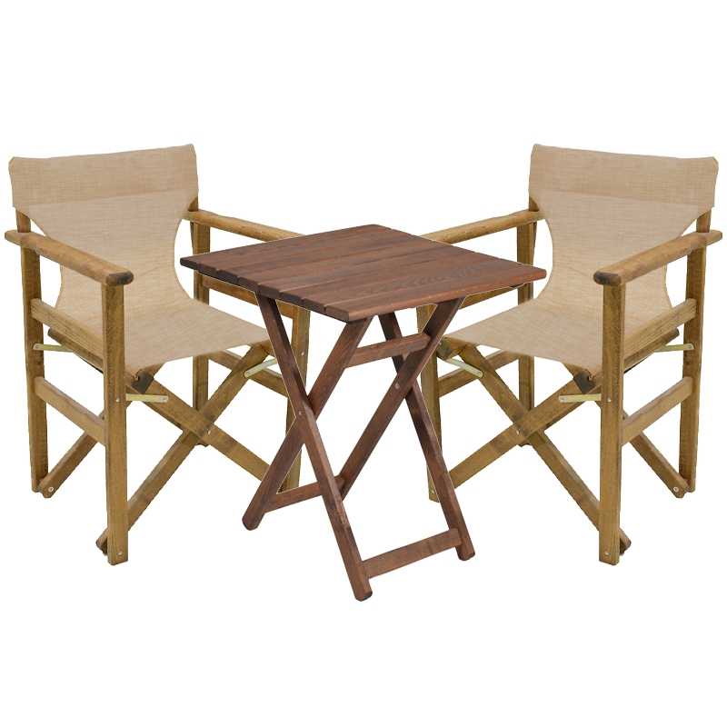 Tραπεζαρία κήπου Retto σετ 3τμχ μασίφ ξύλο οξιάς καρυδί-πανί-μπεζ-εκρού 70x70x71εκ