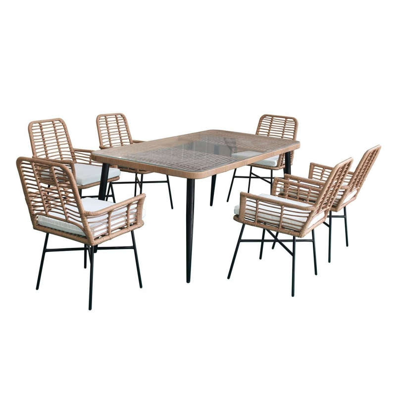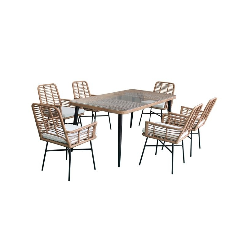 Ε280,S1 SALSA Dining Set (Τρ.180x90+6 Πολυθρ.) Μετ.Μαύρο/Wicker Φυσικό, Μαξ.Άσπρο