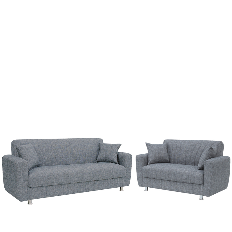 διθέσιο και έναν τριθέσιο καναπέ σε γκρι χρώμα. Αυτό το σετ αποτελεί την ιδανική επιλογή για όσους αναζητούν έναν