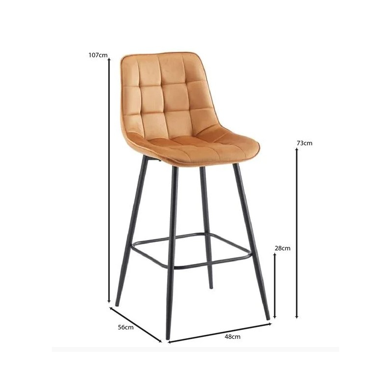 ΕΜ7916,4 MYRIAM Σκαμπό Bar Μέταλ.Μαύρο/Ύφασμα Velure Camel