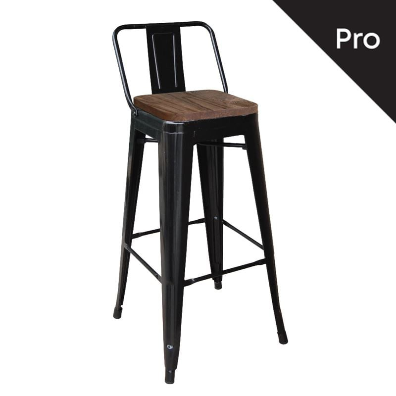 RELIX Wood Σκαμπό Bar-Pro με Πλάτη, Μέταλλο Βαφή Μαύρο Μatte, Απόχρωση Ξύλου Dark Oak 44x44x75/100cm