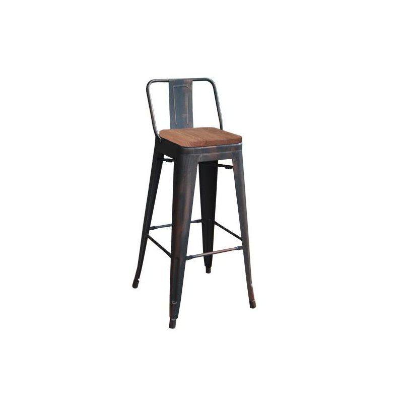 RELIX Wood Σκαμπό Bar-Pro με Πλάτη, Μέταλλο Βαφή Antique Black, Απόχρωση Ξύλου Dark Oak 44x44x75/100cm