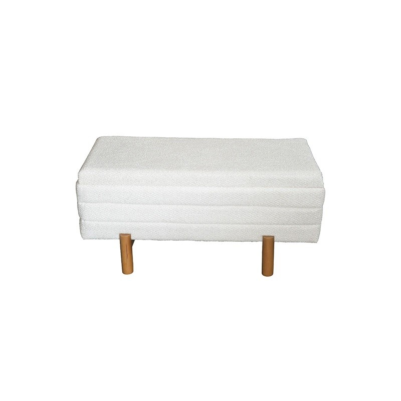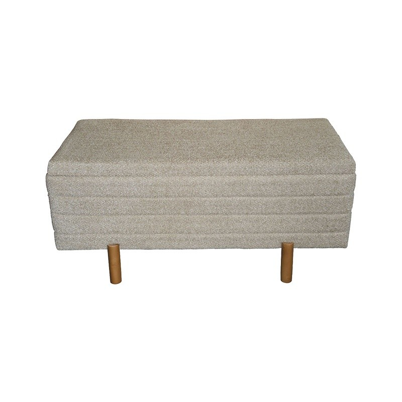 Σκαμπό μπαούλο Cindy Inart σετ 2 τεμ μπουκλέ ύφασμα σε μπεζ και λευκή απόχρωση