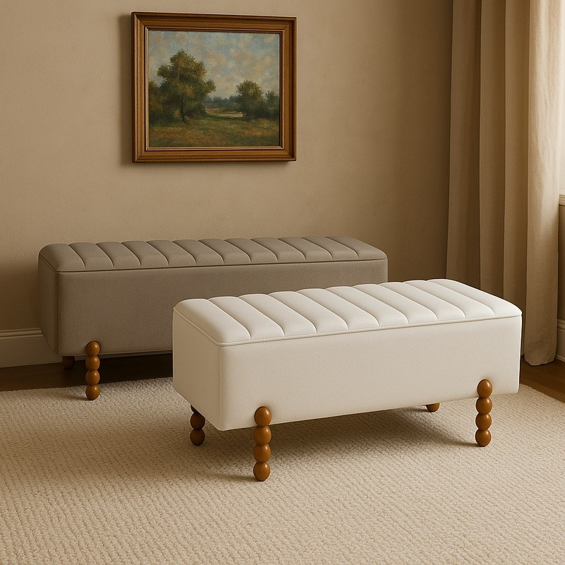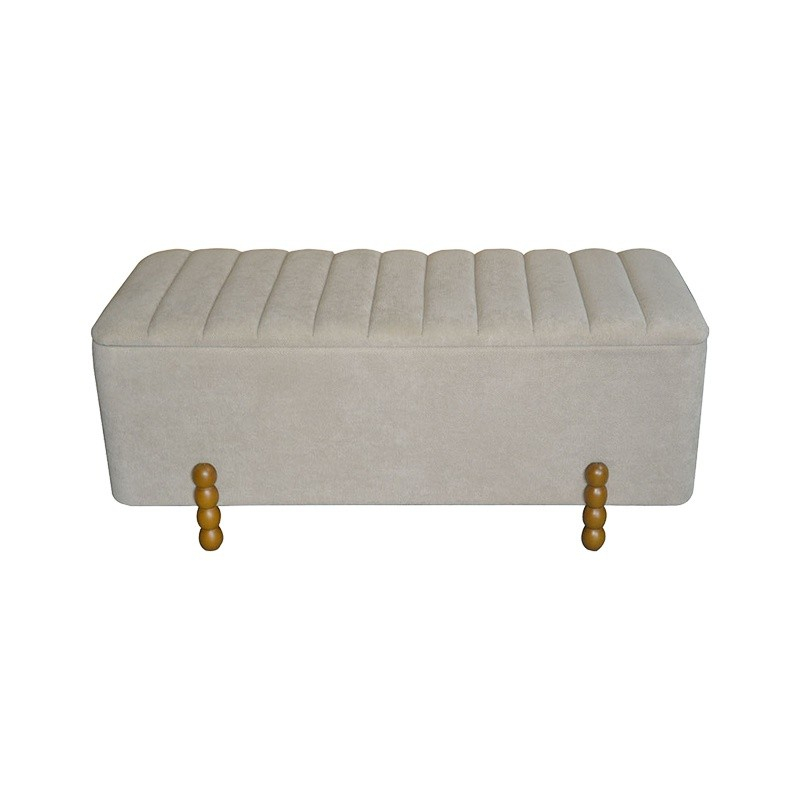 Σκαμπό μπαούλο Daph Inart σετ 2 τεμ βελούδο σε μπεζ και λευκή απόχρωση
