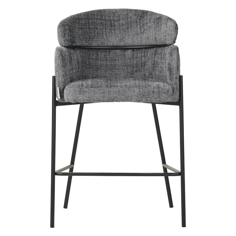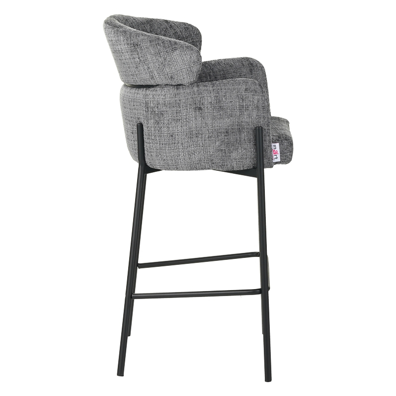 Σκαμπό μπαρ Tolerse Inart ανοιχτό γκρι ύφασμα-πόδι μαύρο μέταλλο