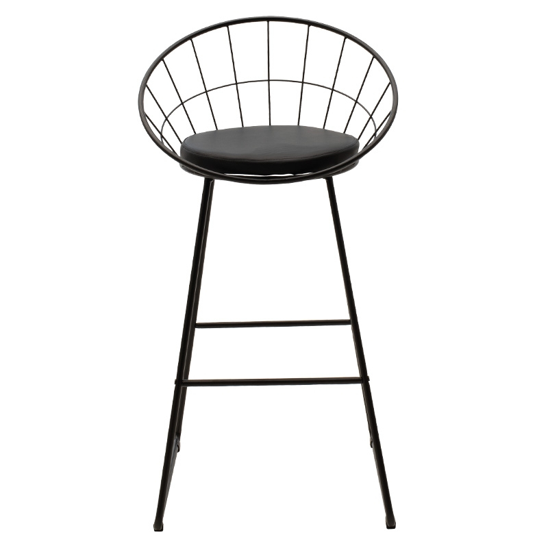 Σκαμπό μπαρ Seth pakoworld μεταλλικό μαύρο με μαξιλάρι PVC μαύρο