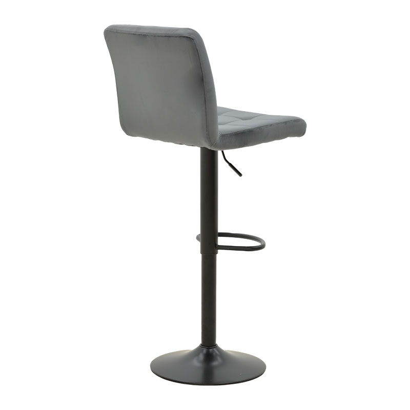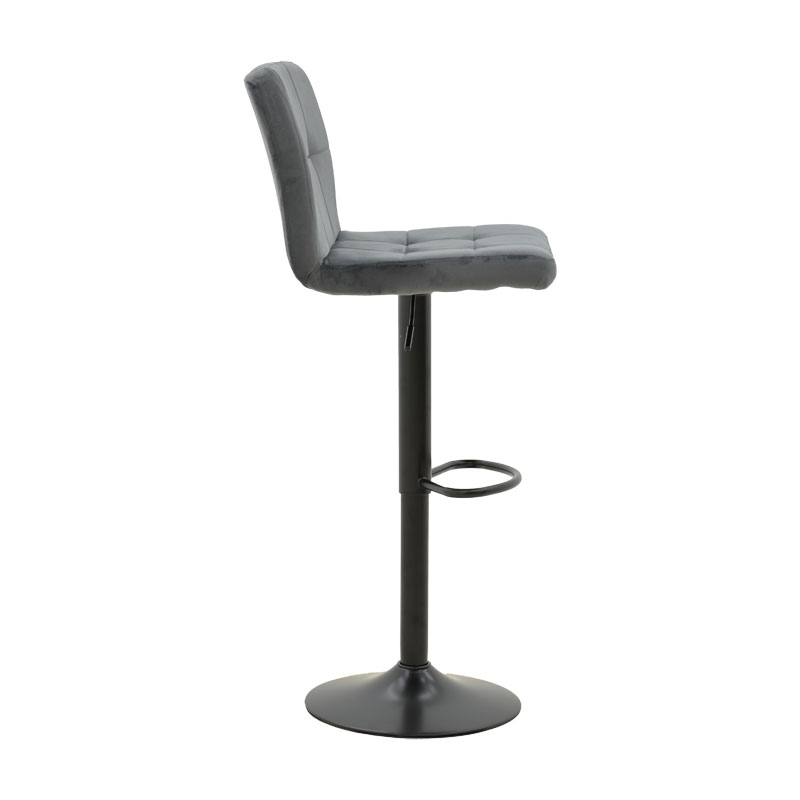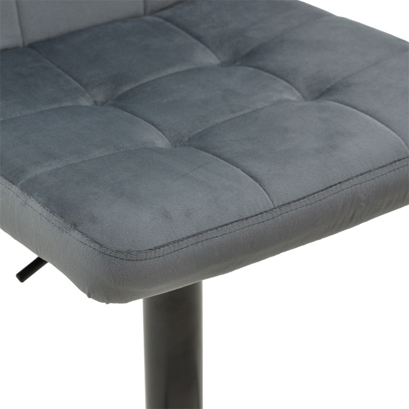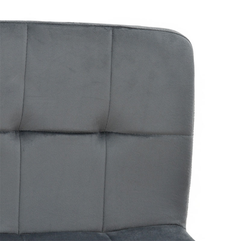 - Έδρα επενδυμένη με γκρι βελούδο αρίστης ποιότητας.Το βελούδο είναι ένα πολυτελές ύφασμα με απαλή υφή και ιδιαίτερη λάμψη, που συνήθως χρησιμοποιείται για επιπλαρισμό και διακόσμηση. Σε σκαμπό μπαρ, το βελούδο προσδίδει μια αίσθηση πολυτέλειας και εκλεπτυσμένου στιλ.Η μαλακή του υφή προσφέρει άνεση και είναι ευχάριστη στην αφή, καθιστώντας το σκαμπό μπαρ ιδανικό για χαλάρωση και άνετη χρήση.