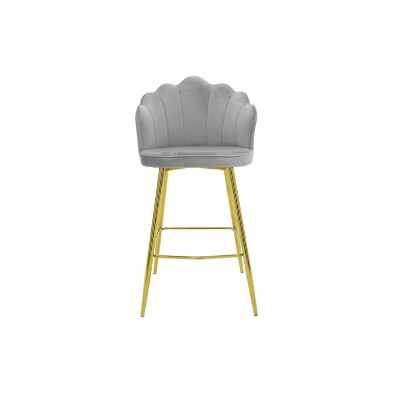 Σκαμπό μπαρ Nataly pakoworld βελούδο γκρι-μέταλλο χρυσό (52x51x100εκ)