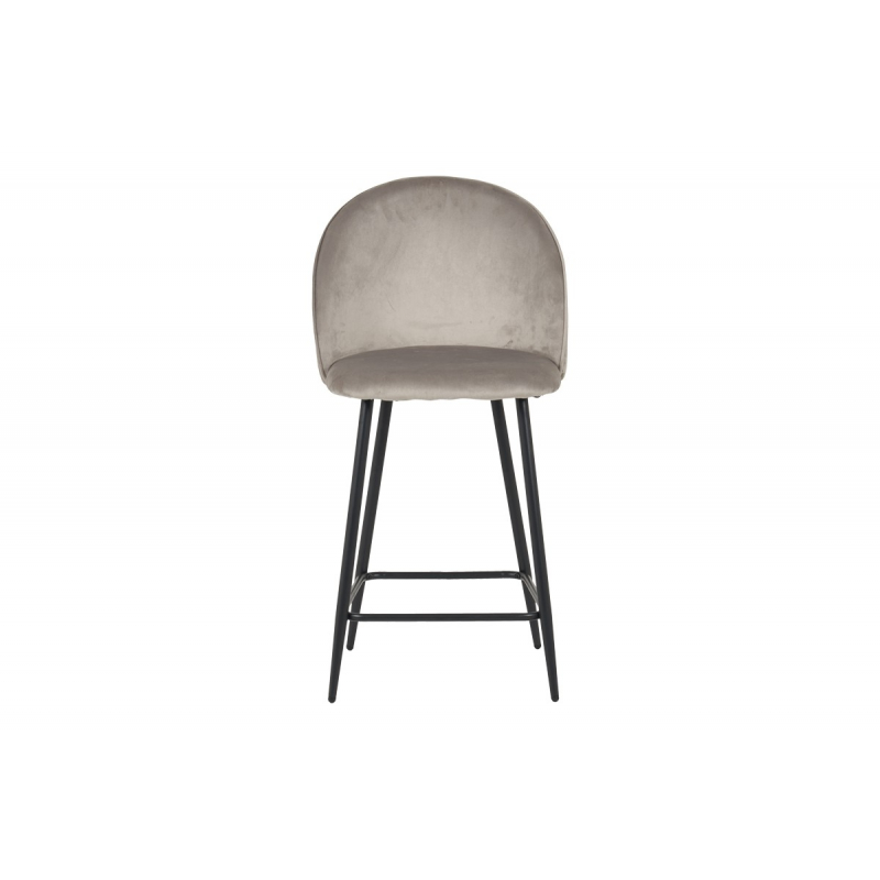 Σκαμπό μπαρ μεσαίου ύψους Perch pakoworld βελούδο σε γκρί απόχρωση με μαύρα μεταλλικά πόδια 50x43x99εκ