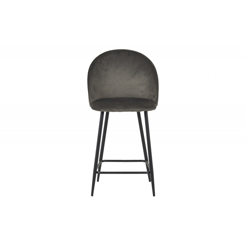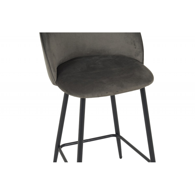 Σκαμπό μπαρ μεσαίου ύψους Perch pakoworld βελούδο σε ανθρακί απόχρωση με μαύρα μεταλλικά πόδια 50x43x99εκ
