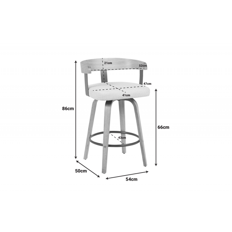 Αναβαθμίστε την κουζίνα ή τον χώρο του μπαρ σας με αυτό το κομψό και λειτουργικό σκαμπό μπαρ Anesy, που συνδυάζει άψογα την χαλάρωση με τον μοντέρνο σχεδιασμό. Η ιδανική επιλογή για καθημερινή χρήση και κοινωνικές συγκεντρώσεις. Τεχνικά χαρακτηριστικά: Κατασκευασμένο με ξύλο εξαιρετικής ποιότητας και μεταλλικό σκελετό σε μπρονζέ χρώμα. Στήριξη σε ξύλινα πόδια σε χρώμα white wash. Επένδυση με ύφασμα ασυναγώνιστης ποιότητας σε μπεζ χρώμα. Προσφέρει δυνατότητα περιστροφής 360 μοιρών που σας επιτρέπει να περιστρέφετε την καρέκλα προς οποιαδήποτε κατεύθυνση χωρίς να καταπονείτε την πλάτη σας. Διάσταση προϊόντος: Μήκος: 54 εκ. Πλάτος: 50 εκ. Ύψος: 85 εκ. Ύψος έδρας: 65 εκ. Βάθος έδρας: 47 εκ. Ύψος πλάτης: 22.5 εκ.