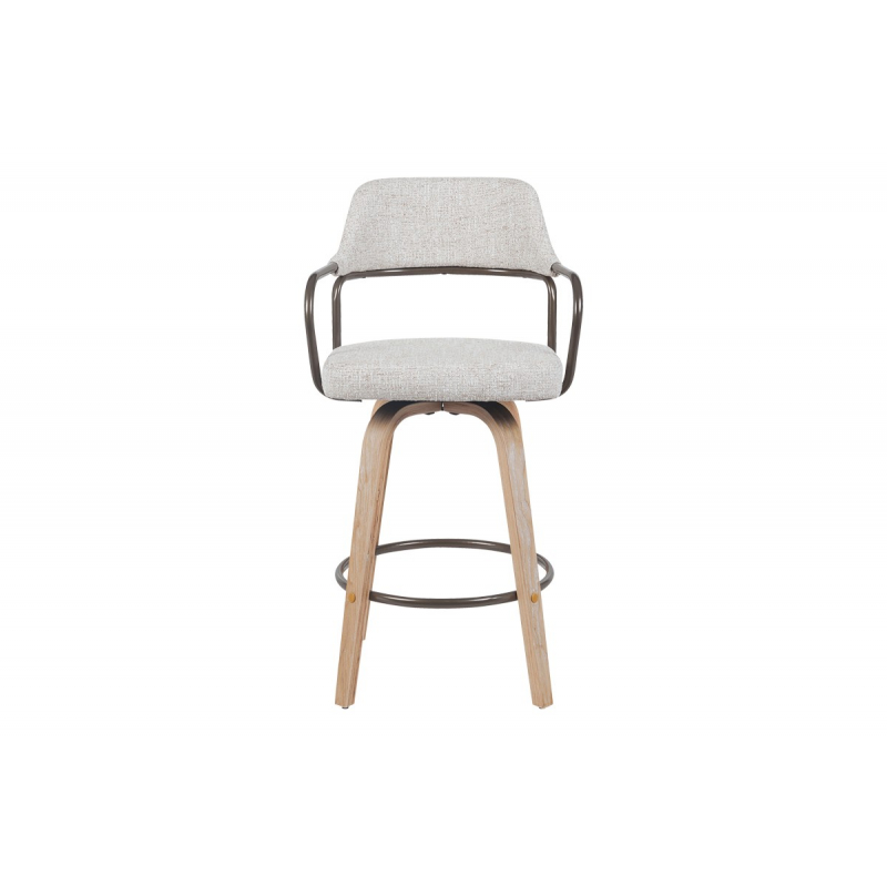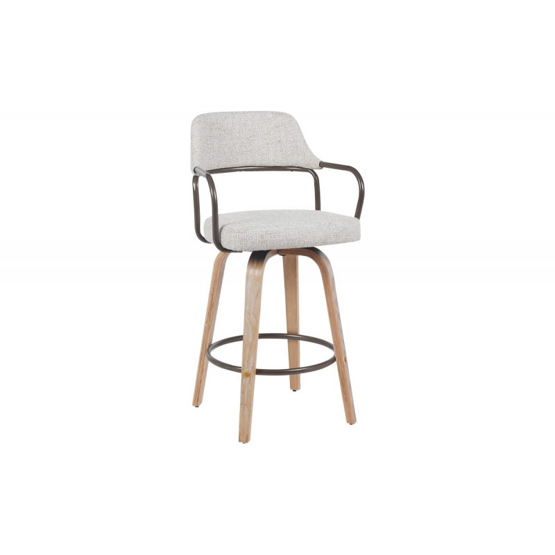 Σκαμπό μπαρ Tertia pakoworld περιστρεφόμενο μεσαίου μεγέθους μέταλλο-ξύλο με ύφασμα σε μπεζ-καφέ απόχρωση 54x52x98εκ