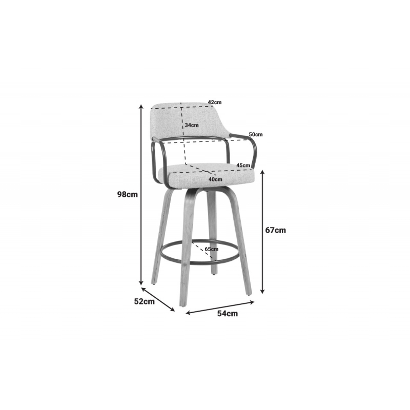 Αναβαθμίστε τον χώρο σας με αυτό το κομψό και άνετο σκαμπό μπαρ, ιδανικό για την κουζίνα, το μπαρ ή οποιονδήποτε πάγκο. Συνδυάζοντας την μοντέρνα αισθητική με την πρακτική λειτουργικότητα, αυτό το σκαμπό είναι μια εξαιρετική προσθήκη σε κάθε σπίτι ή επαγγελματικό χώρο. Τεχνικά χαρακτηριστικά: Κατασκευασμένο από ξύλο εξαιρετικής ποιότητας. Φέρει μεταλλικά μπράτσα σε μπρονζέ χρώμα, προσφέροντας μεγαλύτερη άνεση και χαλάρωση. Στήριξη σε ξύλινα πόδια Επένδυση με ύφασμα ασυναγώνιστης ποιότητας σε μπεζ-καφέ χρώμα. Προσφέρει δυνατότητα περιστροφής 360 μοιρών που σας επιτρέπει να περιστρέφετε την καρέκλα προς οποιαδήποτε κατεύθυνση χωρίς να καταπονείτε την πλάτη σας. Διάσταση προϊόντος: Μήκος: 54 εκ. Πλάτος: 52 εκ. Ύψος: 98 εκ. Ύψος έδρας: 66 εκ. Βάθος έδρας: 46 εκ. Ύψος πλάτης: 34 εκ.
