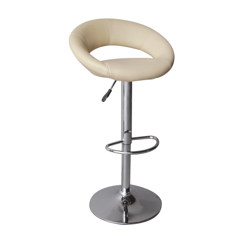 BELT Σκαμπό BAR με Πλάτη, Βάση Χρώμιο, PU Μπεζ, Ρύθμιση Ύψους, Περιστρεφόμενο 54x49x61/82-82/103cm