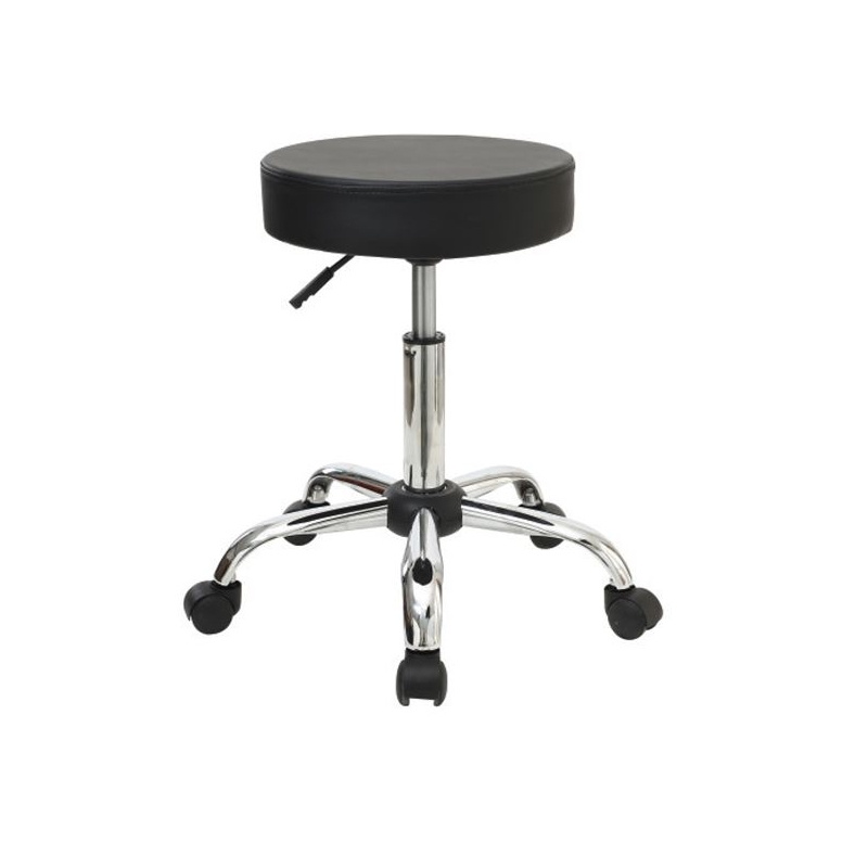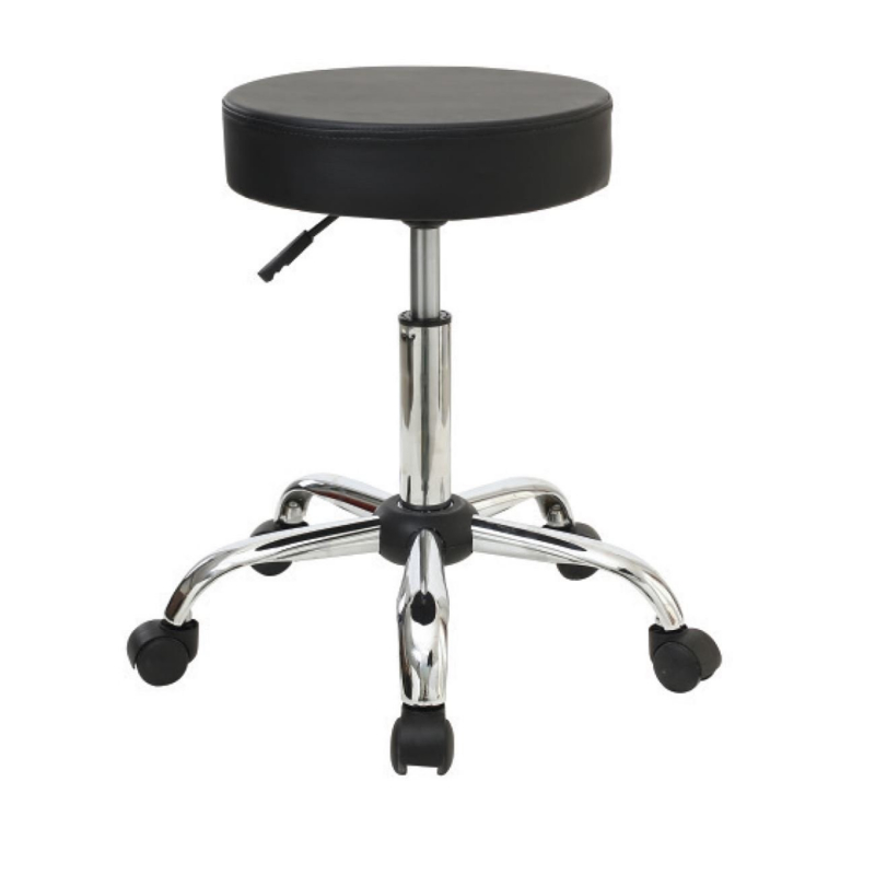 GLORY Σκαμπό, Βάση Χρώμιο, PU Μαύρο, Ρυθμιζόμενο Ύψος, Περιστρεφόμενο, Τροχήλατο Φ35 H.51/67cm