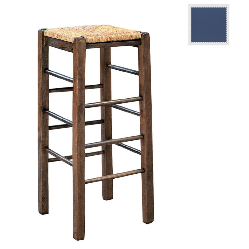 ΤΑΒΕΡΝΑΣ Σκαμπό BAR, Οξιά Εμποτισμός Ανιλίνη Μπλε, Κάθισμα Ψάθα 35x35x80cm