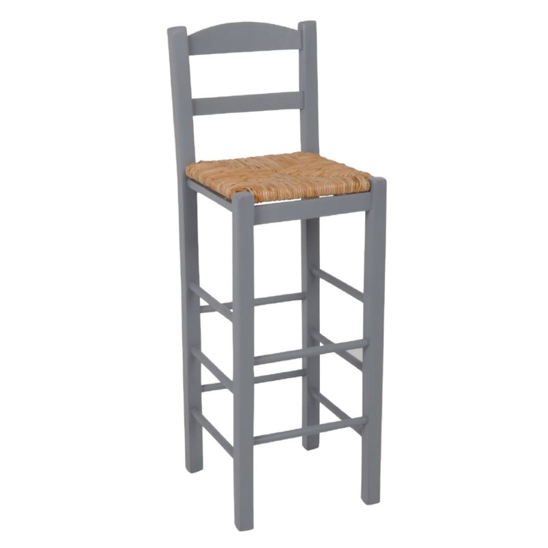 Ρ980,Ε10 ΣΙΦΝΟΣ Σκαμπό BAR 42RC Ψάθα Εμποτ.Λάκα Γκρι